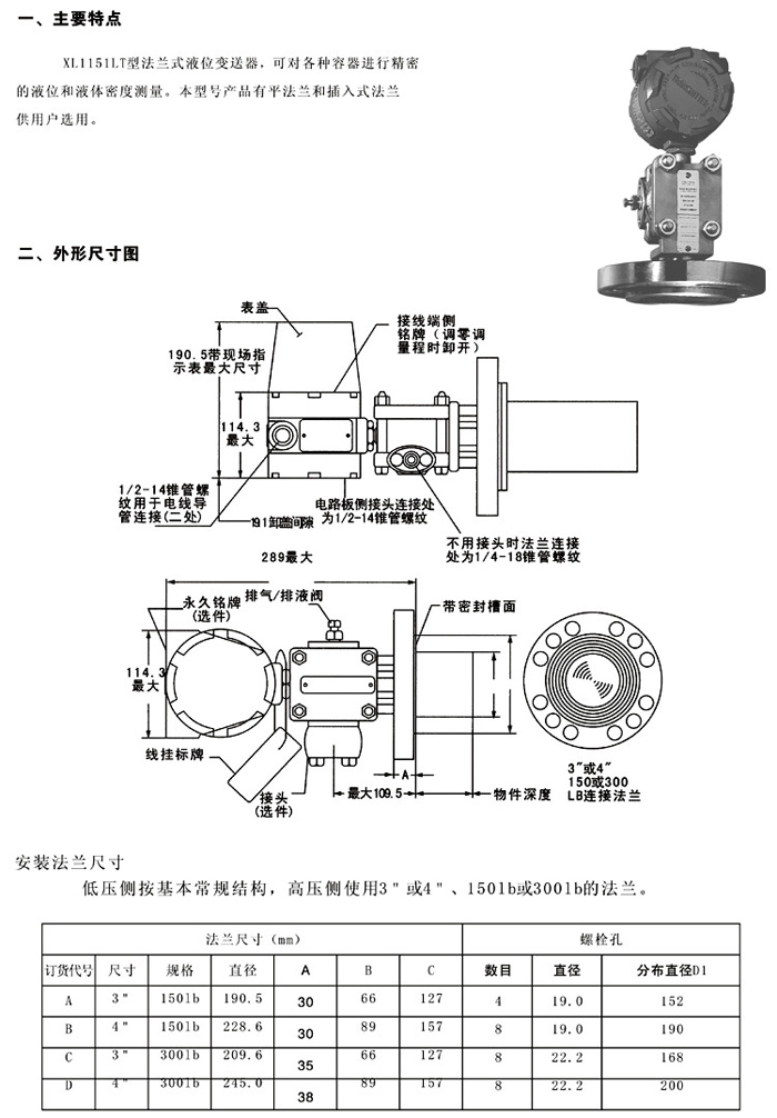 XL1151LT單平法蘭/液位變送器