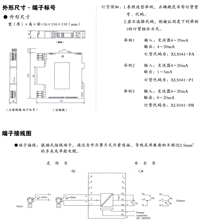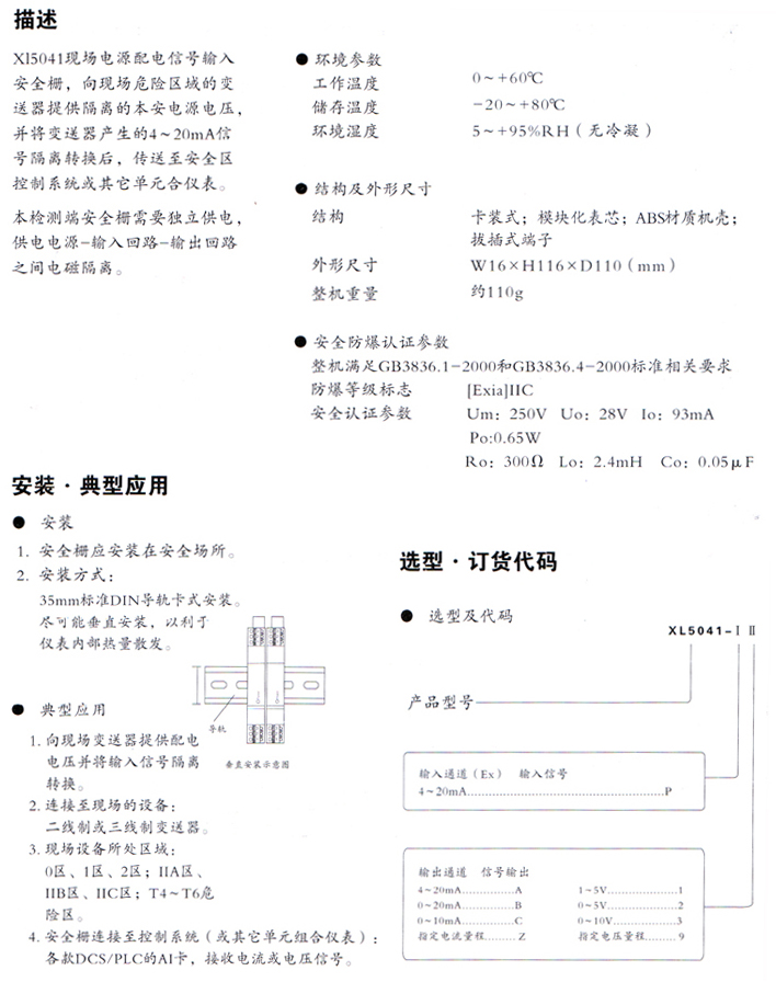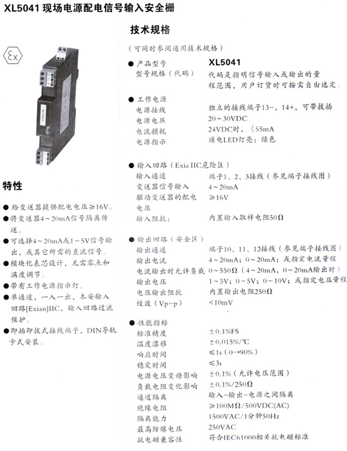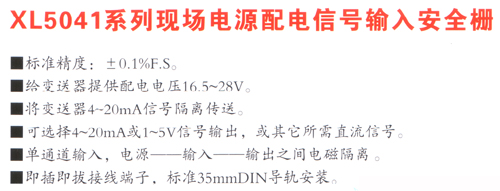XWP5041系列現(xiàn)場(chǎng)電源配電信號(hào)輸入安全柵